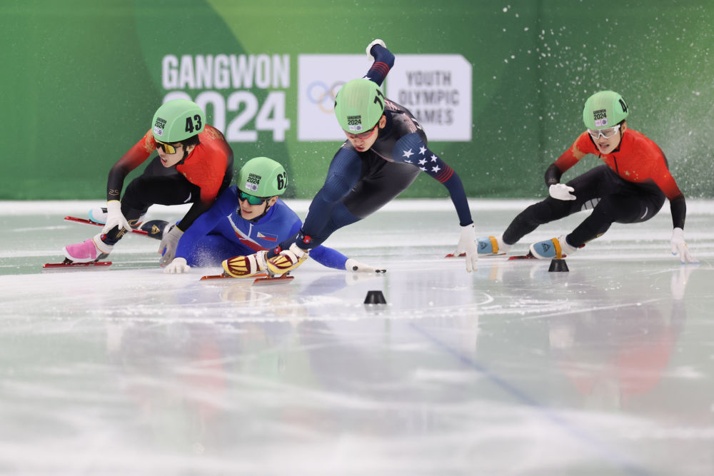 決賽進(jìn)行到最后一圈的最后一個(gè)彎道時(shí),美國(guó)選手第一個(gè)沖線,菲律賓選手在內(nèi)道想要超越張柏浩時(shí)失去重心,摔倒時(shí)也帶倒了張柏浩。這使得原本排在第四名的張心喆第二個(gè)沖過(guò)了終點(diǎn),他在冰刀過(guò)線時(shí)還回頭看向了隊(duì)友。