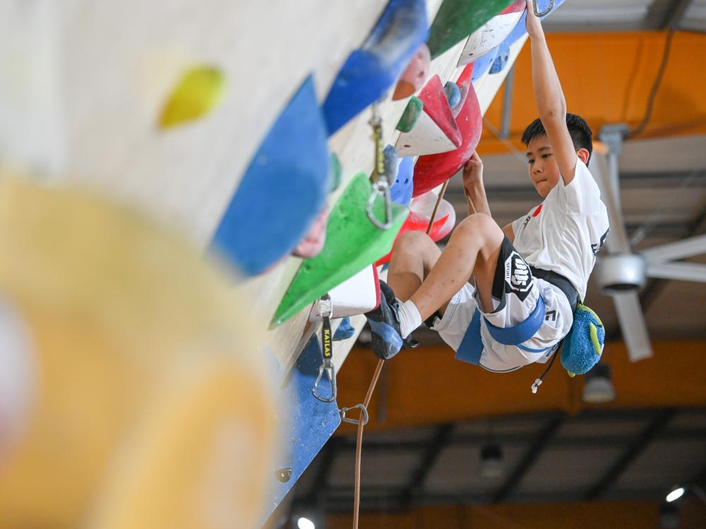 7月16日,方先旻在訓(xùn)練攀巖。新華社記者 王曦 攝 在這座城市的另一側(cè) 12歲的方先旻濕透了頭發(fā) 目光如炬地攀爬在室內(nèi)巖壁上 在剛剛過去的2024年四川省青少年攀巖錦標(biāo)賽上 方先旻得到兩塊金牌 正在認(rèn)真?zhèn)鋺?zhàn)將在8月進(jìn)行的 成都市運(yùn)動(dòng)會(huì)攀巖項(xiàng)目比賽