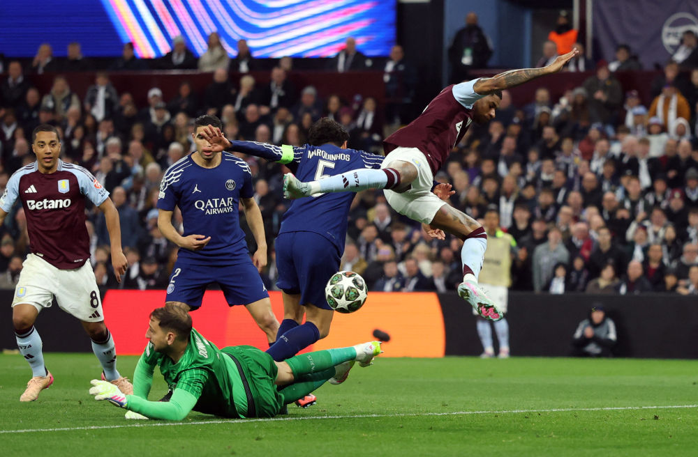 在維拉公園球場的雨戰(zhàn)中,首回合主場3:1勝出的巴黎圣日耳曼先聲奪人。第11分鐘,登貝萊左路突破后橫傳門前,維拉門將馬丁內(nèi)斯撲球失誤,阿什拉夫抓住機會勁射破網(wǎng)。“大巴黎”在第27分鐘打出高效反擊,登貝萊助攻左后衛(wèi)門德斯低射命中,將領先優(yōu)勢擴大為2:0。