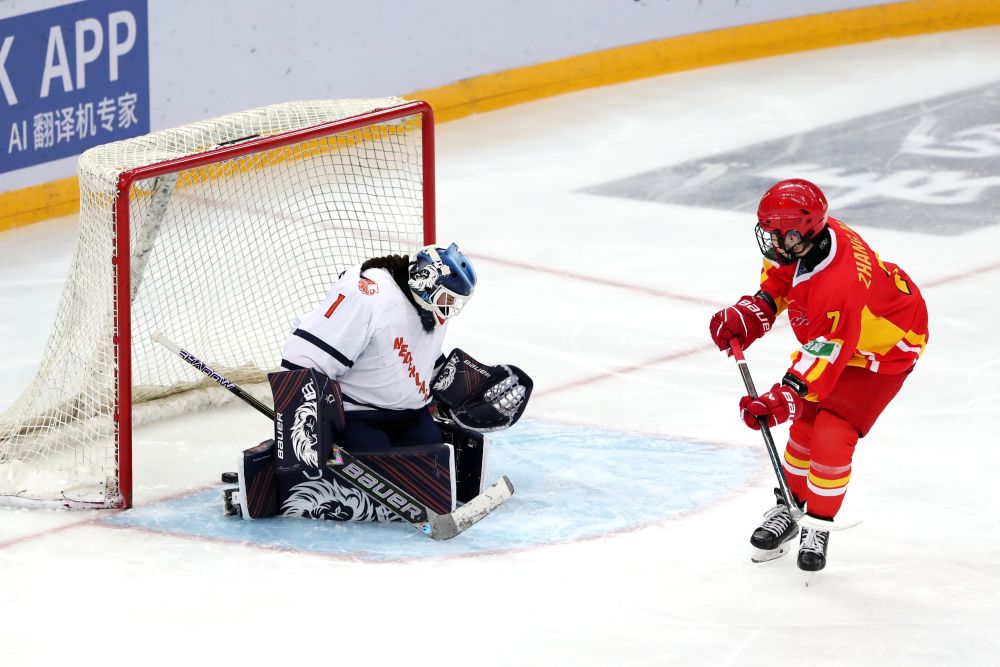 比賽伊始,雙方攻勢積極。第三分鐘,荷蘭隊打出精妙配合,科拉德門前補射得手,冰球從中國隊門將詹佳慧腿下滑入球網(wǎng),比分變?yōu)?:1。