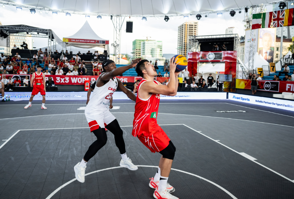 中國隊(duì)球員在對(duì)陣加拿大隊(duì)的比賽中準(zhǔn)備投籃。圖片來自國際籃聯(lián)官網(wǎng)