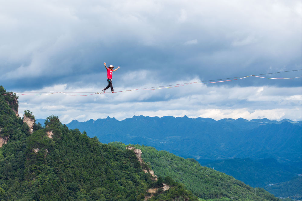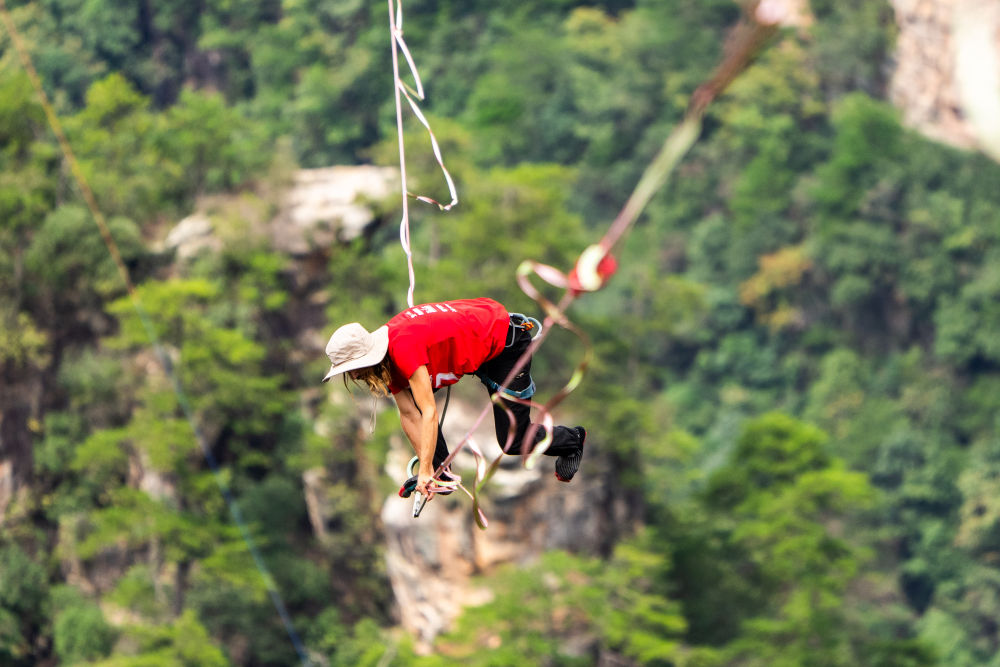 至今,張家界已連續(xù)舉辦八屆黃石寨高空扁帶賽,吸引眾多國內(nèi)外扁帶愛好者在絕壁間一決高下。近年來,張家界國家森林公園圍繞“旅游+體育”模式,舉辦了黃石寨高空扁帶賽、自行車極限速降賽、百龍?zhí)焯莞呖帐幚K挑戰(zhàn)等眾多賽事,將張家界自然風(fēng)光與體育相結(jié)合,積極推動文體旅深度融合。