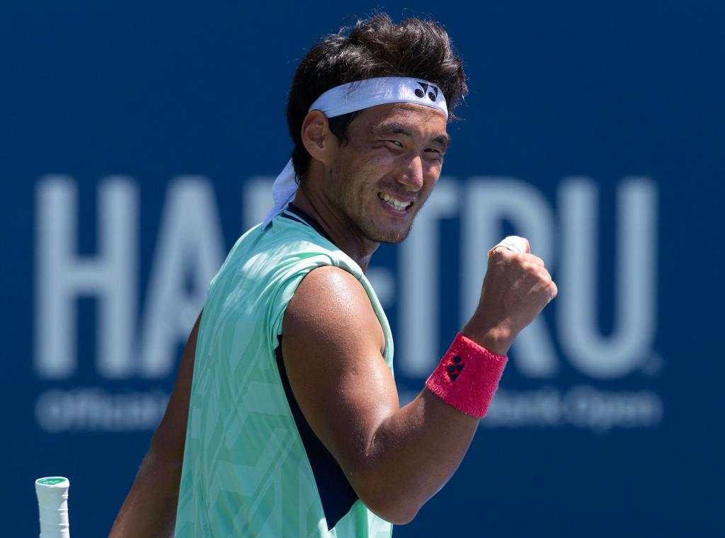 7月28日,中國選手布云朝克特在比賽后慶祝勝利。當日,在多倫多舉行的2025年加拿大國家銀行網(wǎng)球公開賽男單首輪比賽中,中國選手布云朝克特2比0戰(zhàn)勝捷克選手科普里瓦,晉級第二輪。新華社發(fā)(鄒崢攝)