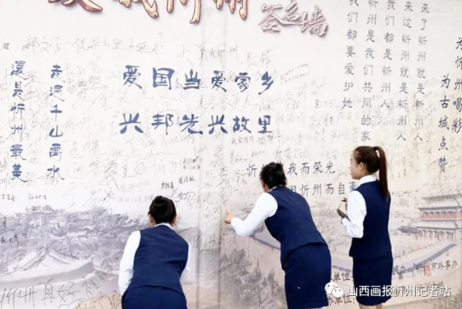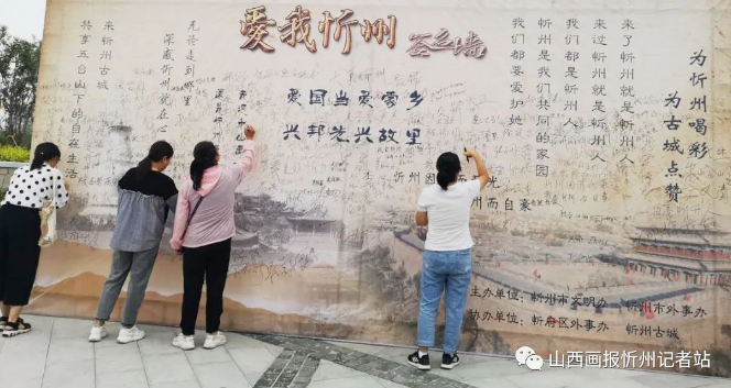 “走遍千山萬水,還是忻州最美”“來了忻州就是忻州人,來過忻州就是忻州人”“愛國當(dāng)愛家鄉(xiāng) 興邦先興故里”……墻上的一句句充滿情感、生動(dòng)質(zhì)樸的語言,寫滿了對(duì)祖國、對(duì)家鄉(xiāng)的濃濃熱愛,引起了過往游客路人的深深共鳴。游人們有的在這些文字旁簽名,有的合影留念,有的文思泉涌寫下一條條深情寄語,盡情表達(dá)著對(duì)忻州發(fā)展的美好祝福和共建全國文明城市的堅(jiān)定信心。