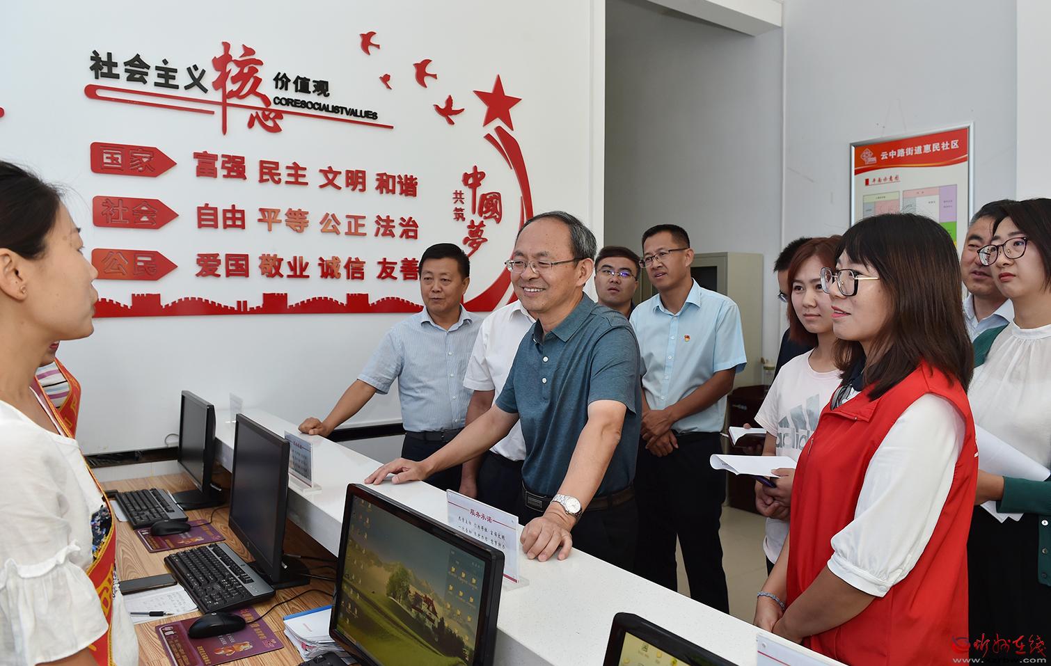 惠民社區(qū)創(chuàng)文氣氛濃厚,墻上張貼著創(chuàng)文展板,隨處可見溫馨的提示,志愿者隨時(shí)提供服務(wù)。鄭連生檢查了社區(qū)綜合文化服務(wù)中心,向工作人員詢問服務(wù)中心的功能和作用,并查看了社區(qū)創(chuàng)文資料。他強(qiáng)調(diào),要切實(shí)發(fā)揮好綜合文化服務(wù)中心在文化宣傳、黨員教育、科普教育、普法教育、市民教育、家長(zhǎng)學(xué)校、道德講堂等方面的作用,形成制度,制定活動(dòng)計(jì)劃,按期開展活動(dòng),促進(jìn)群眾素能的不斷提升。