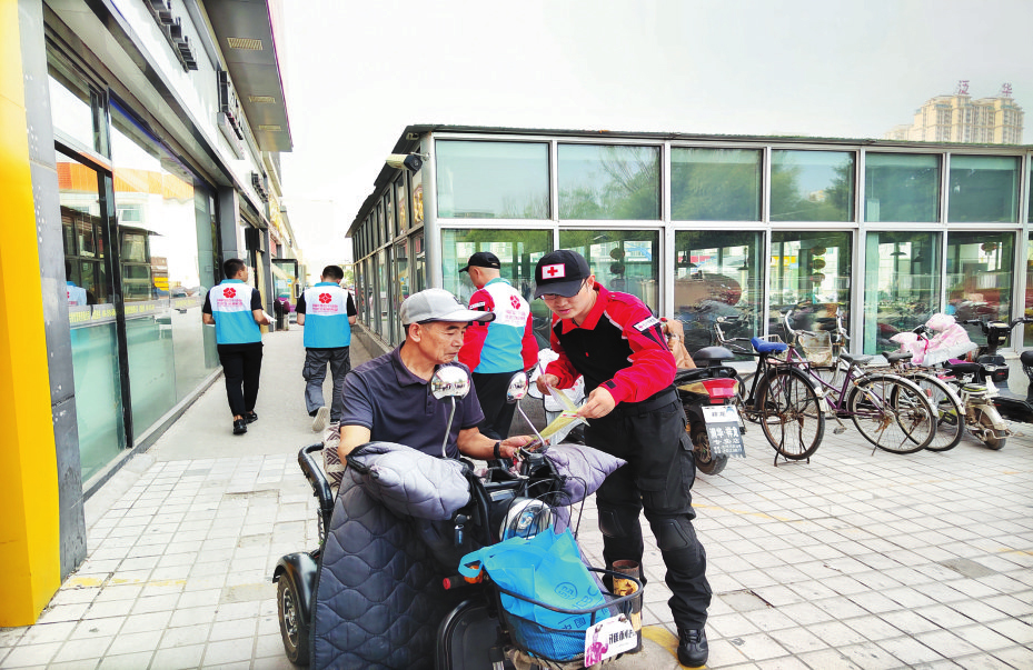 據(jù)了解,每年9月的第三個星期六是“世界骨髓捐獻者日”。活動當天,市紅十字會工作人員、市紅十字應急救援隊隊員以及志愿者,向市民普及日常應急救護知識,介紹應急救護基本技能。同時,向市民發(fā)放健康教育宣傳資料,宣傳無償獻血、造血干細胞捐獻等相關知識,呼吁更多適齡健康公民奉獻愛心,挽救更多的血液病患者。圖為志愿者在活動現(xiàn)場向市民發(fā)放健康教育宣傳資料。(記者張林泉 攝影報道)