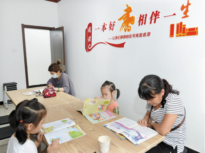 我市在創(chuàng)建全國(guó)文明城市工作中,城區(qū)辦事處綜合文化站標(biāo)準(zhǔn)化規(guī)范化工作得到進(jìn)一步提升。圖為社區(qū)群眾正在新建路辦事處黨群服務(wù)中心閱覽室進(jìn)行親子閱讀。本報(bào)記者 宮愛文 攝