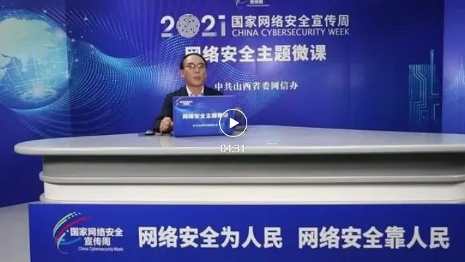 為深入宣傳貫徹習(xí)近平總書記關(guān)于網(wǎng)絡(luò)強(qiáng)國(guó)的重要思想,深入宣傳貫徹習(xí)近平總書記對(duì)網(wǎng)絡(luò)安全工作“四個(gè)堅(jiān)持”的重要指示,深入宣傳《中華人民共和國(guó)網(wǎng)絡(luò)安全法》和相關(guān)法律法規(guī),由山西省委網(wǎng)信辦主辦的2021國(guó)家網(wǎng)絡(luò)安全宣傳周山西“網(wǎng)絡(luò)安全主題微課”活動(dòng)于10月11日開始全網(wǎng)推送。