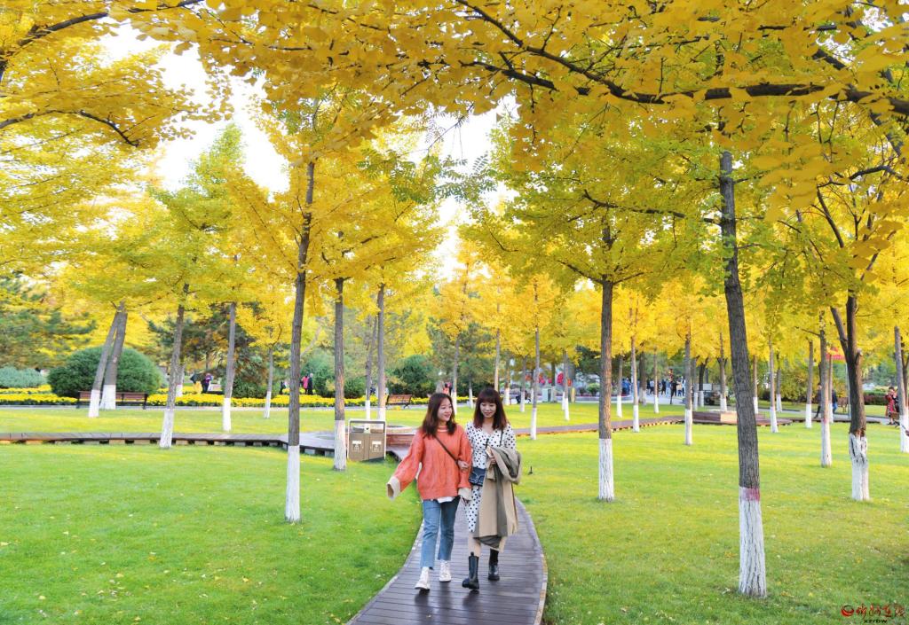 深秋時節(jié),忻州城區(qū)隨處可見花成帶、綠成片、樹成景的優(yōu)美風(fēng)景線。近年來,我市不斷推進(jìn)城市綠化,提升綠化檔次,極大改善了人居環(huán)境。圖為游客徜徉在人民公園銀杏林內(nèi)。 (張存良 攝)
