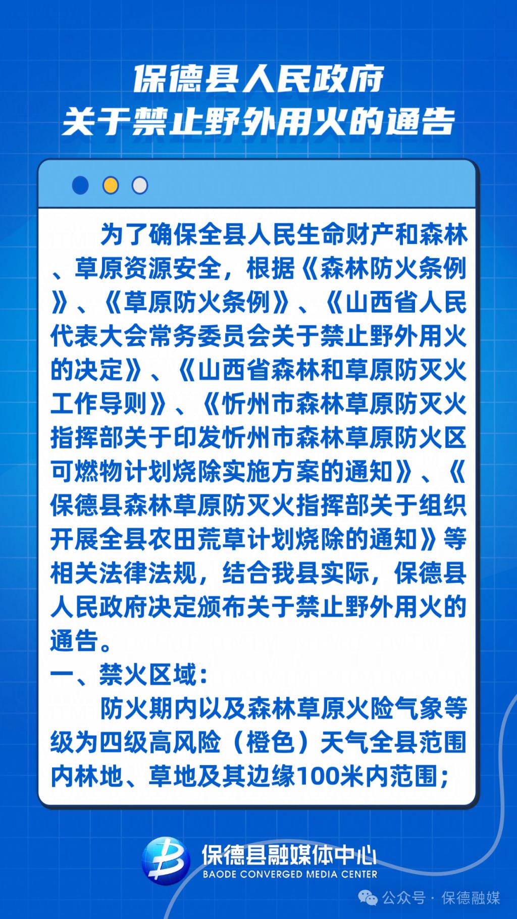 保德縣人民政府關(guān)于禁止野外用火的通告