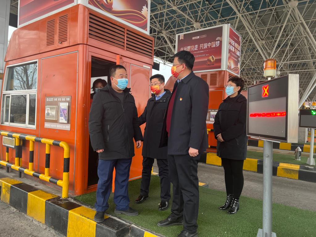 近日, 山西交控忻州南高速公路管理公司黨委書記、董事長(zhǎng)潘東一行在站長(zhǎng)李瑞軍等人的陪同下,對(duì)忻州收費(fèi)站收費(fèi)、治超、監(jiān)控、票證等工作人員進(jìn)行現(xiàn)場(chǎng)慰問,送上公司黨委的關(guān)心關(guān)懷之情,并向所有員工致以新春?jiǎn)柡颉K麖?qiáng)調(diào)要切實(shí)做好關(guān)愛、關(guān)心員工工作,疫情防控、勇于擔(dān)當(dāng)、主動(dòng)作為,切實(shí)抓好常態(tài)化疫情防控及春運(yùn)安全保暢工作,扎實(shí)筑牢安全生產(chǎn)環(huán)節(jié)管控,確?!皟晒?jié)”、春運(yùn)、冬奧、冬殘奧會(huì)等期間站區(qū)、人員運(yùn)營(yíng)安全穩(wěn)定。(馮偉倫)