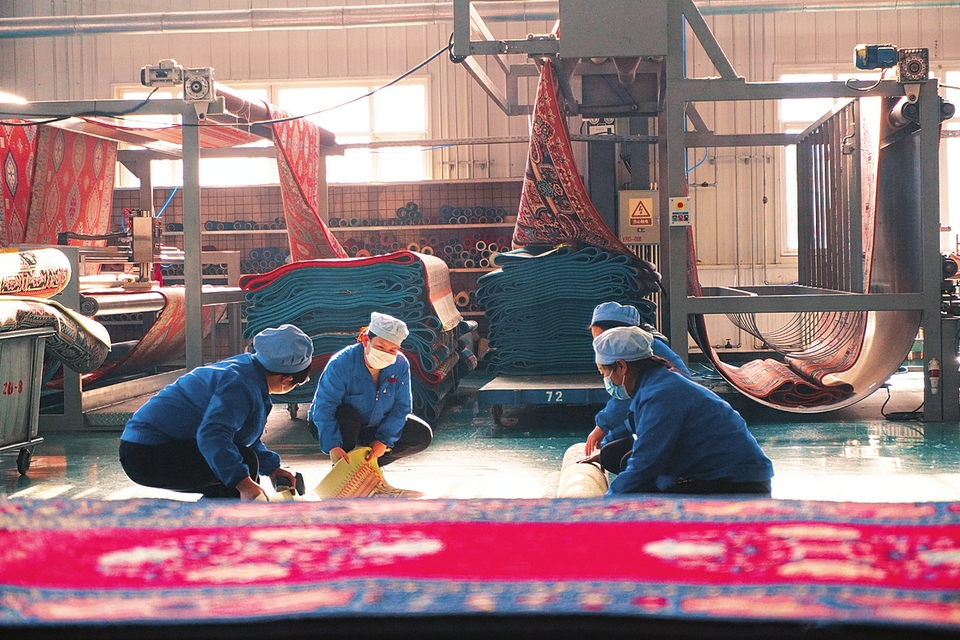 雅瑞地毯公司的廠房里,工人正在趕著完成訂單。山西日報記者李家鳴攝 盡管已是壬寅年臘月二十五,長治雅瑞地毯的廠房里依舊一片繁忙。穿過長長的通道,轟鳴的機器在編程軟件的指揮下,鋪經(jīng)織緯,盡情飛舞。一部分工人正在忙著卷毯打包,有條不紊地操作設(shè)備、搬運、修整,一派火熱。 生產(chǎn)車間里同樣火熱,車間經(jīng)理翟鵬偉帶著工人正在研究新引進的卷毯打包機。原本由人工打包、噴碼的工作現(xiàn)在是全自動操作。眼前7臺七八米高的機器高速運轉(zhuǎn),大型地毯織機上穿梭的各色絲線,隨著機器有節(jié)奏地律動,如同色彩斑斕的畫卷傾瀉而出,出來之后就成了一張精美的地毯。 長治雅瑞地毯有限公司是煤炭企業(yè)的轉(zhuǎn)型項目,2015年投入生產(chǎn)。它的上馬建設(shè),填補了我省地毯行業(yè)的空白,是全省第一家高規(guī)格地毯企業(yè)。經(jīng)過幾年的探索總結(jié),雅瑞地毯的銷量逐年攀升,產(chǎn)品主要銷往廣東、甘肅、青海,甚至以新疆為基點,銷往哈薩克斯坦、塔吉克斯坦、吉爾吉斯斯坦等20多個國家,雅瑞成功闖入國際市場。 此前受疫情影響,雅瑞地毯遇到了和其他企業(yè)一樣的問題?!暗覀冋美媚嵌慰諜n期,將視角轉(zhuǎn)向產(chǎn)業(yè)轉(zhuǎn)型升級和新品研發(fā)?!必撠?zé)產(chǎn)品研發(fā)的車間經(jīng)理宋麗芳告訴記者,“我們持之以恒加大科技創(chuàng)新力度,用3個月時間完成了3款產(chǎn)品的設(shè)計與研發(fā),現(xiàn)在正趕制受疫情影響積壓下來的訂單?!?/p> 在產(chǎn)品展示區(qū)域,一塊塊地毯色彩豐富、圖案精美。摸上去,毯面如錦似緞、柔中有堅。“以我們公司生產(chǎn)的這款阿克明仿手工藏式卡墊為例,織造結(jié)構(gòu)選用穿背工藝,上機后經(jīng)過設(shè)備結(jié)構(gòu)改造,毯背紋路清晰、顏色鮮明,可使機織地毯毯背漏白的弊病降低,接近仿手工效果。”宋麗芳拿起一塊地毯介紹,“目前,我們新研發(fā)的威爾頓丙綸超柔產(chǎn)品已接到不少訂單,藏士卡墊和部分特色產(chǎn)品也已有多個意向客戶?!?/p> 據(jù)了解,現(xiàn)在雅瑞地毯公司已經(jīng)全面復(fù)工,三班倒加班生產(chǎn)。數(shù)據(jù)顯示,雅瑞地毯僅去年12月份就完成了全年積壓的訂單8萬平方米,并新增客戶5家。目前,2023年已簽約新訂單5萬平方米。(山西日報記者李家鳴) (責(zé)任編輯:蔡文斌) |