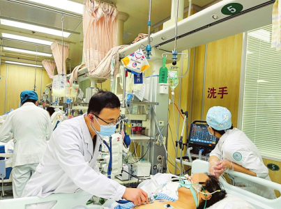 圖⑤春節(jié)假期,張林浩和同事們全力救治患者。