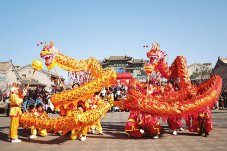 圖①喬家大院文化園區(qū),舞動的彩龍時而盤旋,時而飛舞。