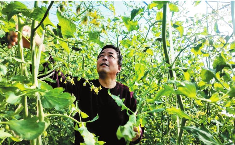 武文光察看圣女果長勢。本報(bào)記者 劉 捷攝