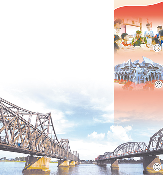 圖②:遼寧丹東鴨綠江斷橋橋頭的青銅雕塑“為了和平”。