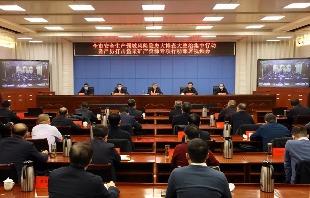 12月21日,全市安全生產(chǎn)領(lǐng)域風(fēng)險(xiǎn)隱患大排查大整治集中行動(dòng)暨嚴(yán)厲打擊盜采礦產(chǎn)資源專(zhuān)項(xiàng)行動(dòng)部署會(huì)召開(kāi),貫徹全省會(huì)議精神,安排我市當(dāng)前工作。市委書(shū)記朱曉東主持會(huì)議并作重要講話(huà),強(qiáng)調(diào)歲末年關(guān)各項(xiàng)工作千頭萬(wàn)緒,安全生產(chǎn)的嚴(yán)峻性、艱巨性、緊迫性尤為突出,各級(jí)各部門(mén)務(wù)必高度重視,從嚴(yán)警醒起來(lái),堅(jiān)決杜絕麻痹?xún)e幸心理、松懈情緒,以永遠(yuǎn)在路上的心態(tài),以一切從零開(kāi)始的作為,堅(jiān)持兩手用力,推進(jìn)兩個(gè)行動(dòng),全面落實(shí)好省委省政府和市委市政府部署要求,堅(jiān)決守牢安全生產(chǎn)底線(xiàn)。市委副書(shū)記、市政府黨組書(shū)記李建國(guó),市委常委、常務(wù)副市長(zhǎng)趙新年,副市長(zhǎng)、市公安局長(zhǎng)袁小波,市政府秘書(shū)長(zhǎng)張艮生出席會(huì)議。會(huì)議以視頻方式召開(kāi),各縣(市、區(qū))設(shè)分會(huì)場(chǎng),兼任縣(市、區(qū))職務(wù)的市領(lǐng)導(dǎo)在分會(huì)場(chǎng)出席會(huì)議。市政府安委會(huì)成員單位和相關(guān)重點(diǎn)企業(yè)負(fù)責(zé)人在市主會(huì)場(chǎng)參加會(huì)議。