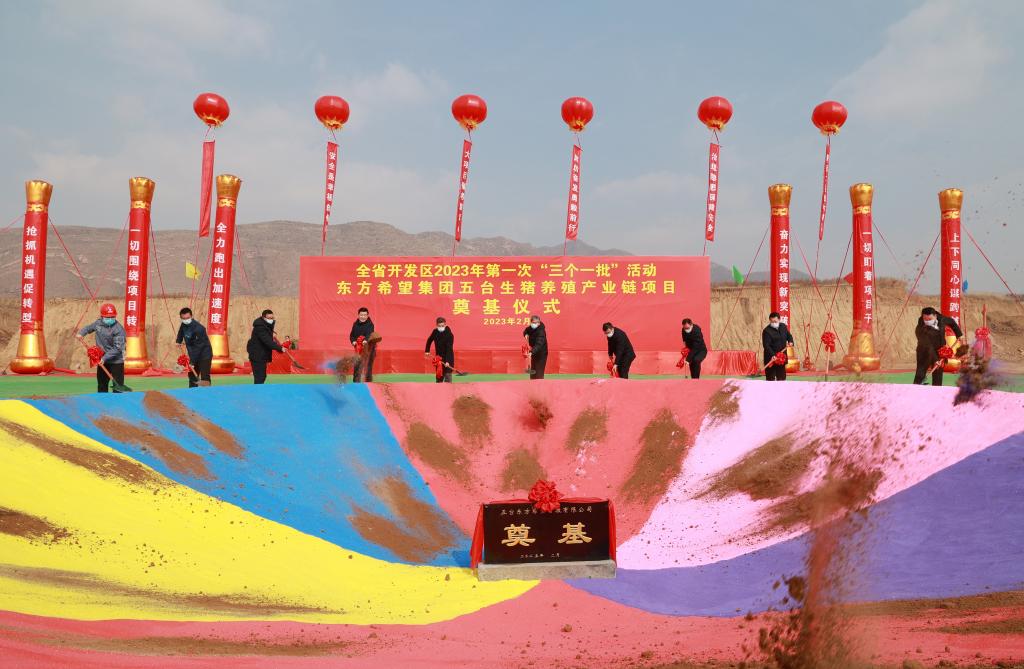 共同為“開工一批”重點項目東方希望集團(tuán)東雷養(yǎng)殖項目培土奠基。張存良 攝