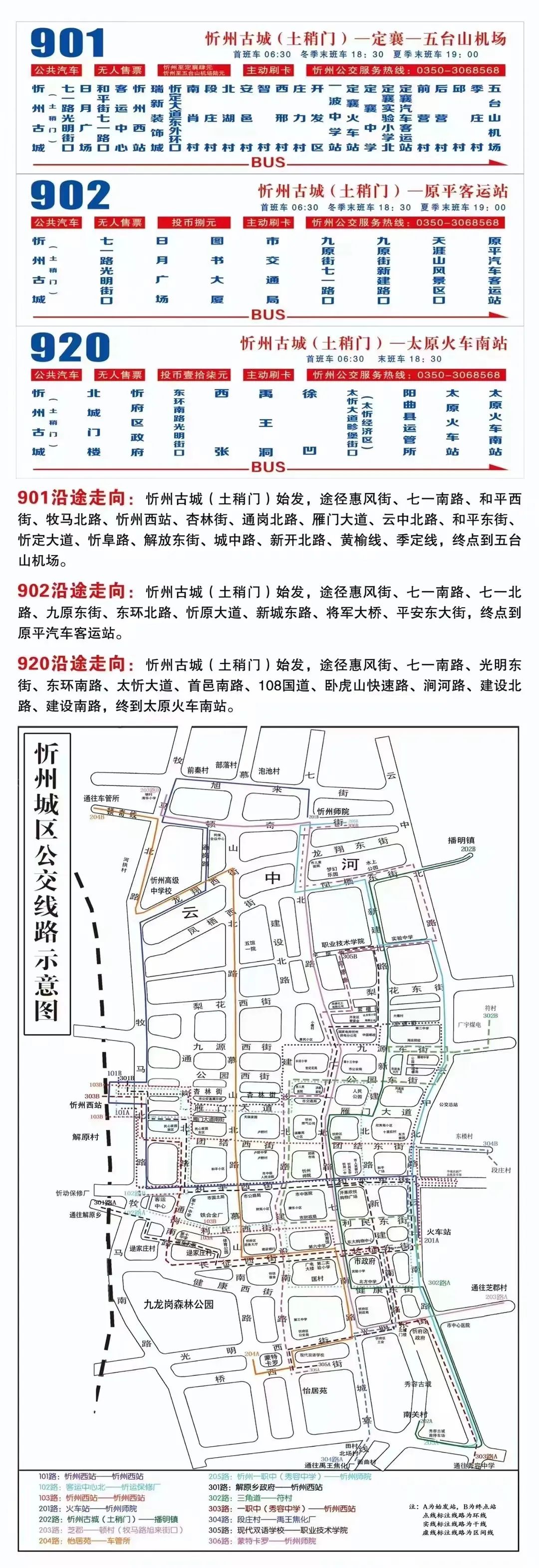 附:忻州至太原市、忻州至原平市、忻州至定襄及五臺山機場三條城際公交線路