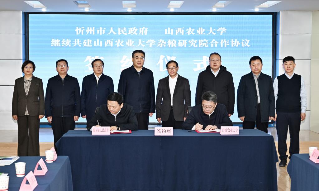 李建國表示,雜糧產(chǎn)業(yè)是忻州的特色產(chǎn)業(yè)、優(yōu)勢產(chǎn)業(yè),更是富民產(chǎn)業(yè)、希望產(chǎn)業(yè),忻州要實現(xiàn)從“農(nóng)業(yè)大市”到“農(nóng)業(yè)強(qiáng)市”的跨越升級,持續(xù)擦亮“忻州雜糧”區(qū)域公用品牌,離不開山西農(nóng)大等專業(yè)智庫和技術(shù)團(tuán)隊的鼎力支持。此次雙方再度攜手、深化共建,是對未來發(fā)展藍(lán)圖的共同描繪。忻州將全面兌現(xiàn)各項人才引進(jìn)、科技創(chuàng)新扶持政策,在項目用地、資金配套、示范推廣等方面給予全力保障,為山西農(nóng)大在忻州的每一位專家、每一項研究、每一處基地提供全方位、無障礙的服務(wù)。在雙方的精誠合作、共同努力下,雜糧研究院必將成為技術(shù)創(chuàng)新的高地、人才培養(yǎng)的搖籃、產(chǎn)業(yè)升級的引擎,為忻州推進(jìn)雜糧全產(chǎn)業(yè)鏈升級、助力鄉(xiāng)村全面振興貢獻(xiàn)新智慧,注入新動能。