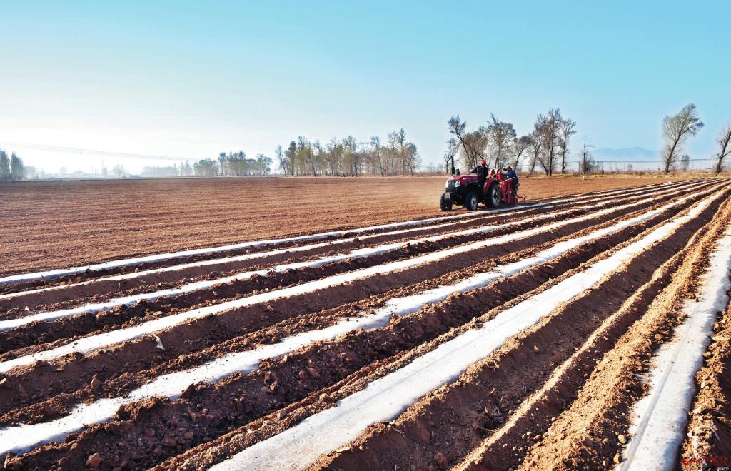 時(shí)下,正值春耕春播大好時(shí)節(jié),在忻府區(qū)流江村的農(nóng)田里,馬鈴薯種植機(jī)開(kāi)足馬力作業(yè),開(kāi)溝、翻土、播種、覆膜等一氣呵成,描繪出一幅機(jī)械化春耕春播的美麗畫(huà)卷。(記者 馮曉磊攝)