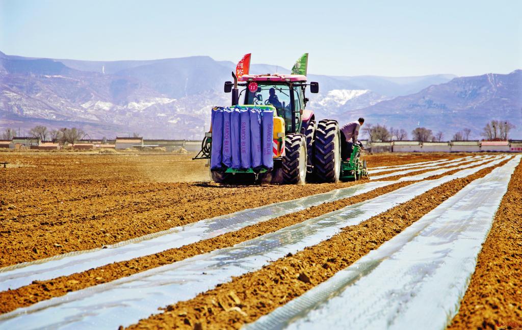 4月10日,五寨縣現(xiàn)代加工型馬鈴薯產(chǎn)業(yè)示范園的萬畝馬鈴薯輪作玉米播種工作全面啟動(dòng),預(yù)計(jì)今年輪作面積達(dá)2萬畝以上。為加快輪作進(jìn)度,園區(qū)引進(jìn)中國神農(nóng)農(nóng)業(yè)機(jī)械發(fā)展(山西)集團(tuán)有限公司大型玉米綜合播種機(jī),該播種機(jī)單次投種、投肥,鋪膜、布管面積可達(dá)100畝以上,預(yù)計(jì)全部輪作玉米播種工作將在5月初完成。圖為大型玉米綜合播種機(jī)正在播種。 (張向榮 攝)