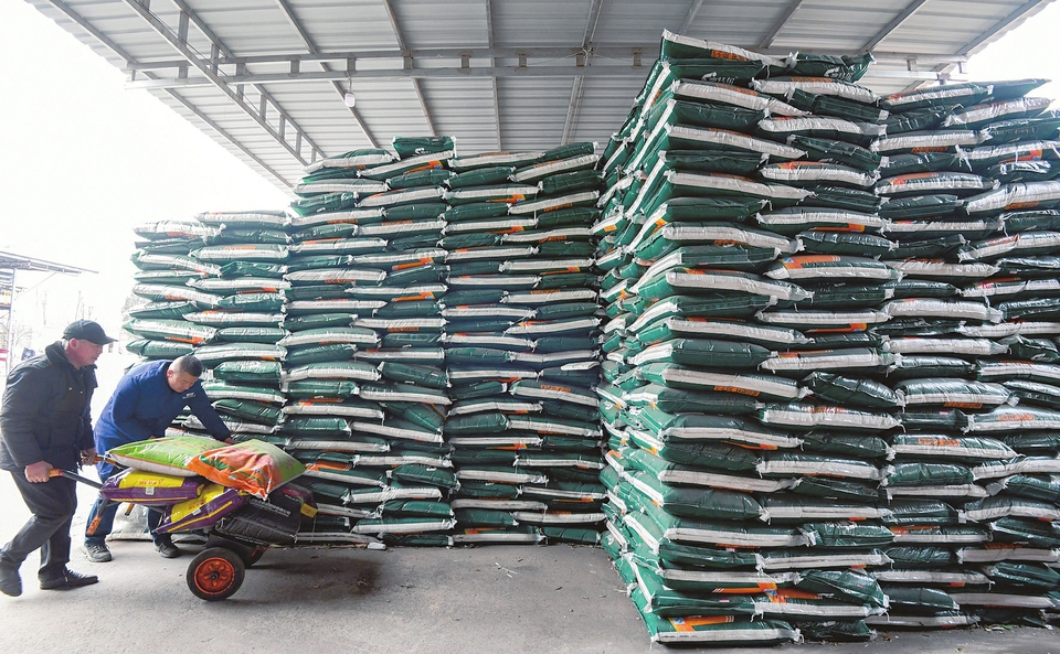 2月24日,長子縣清風農(nóng)資連鎖有限責任公司院內,工人在搬運化肥。隨著春耕生產(chǎn)臨近,該公司開通綠色通道,24小時不間斷作業(yè),加快化肥裝卸、轉運,全力保障春耕備耕。梁棟攝