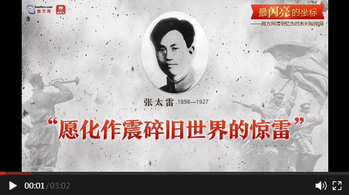編者按:清明憶英烈,忠魂貫長空。4月1日至5日,南方網(wǎng)、粵學(xué)習(xí)客戶端策劃推出“最閃亮的坐標”系列短視頻,通過挖掘廣東革命烈士的光輝事跡,與大家一起緬懷英烈、學(xué)習(xí)英烈。今天推出第二篇《張?zhí)祝涸富髡鹚榕f世界的驚雷》。