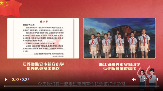 現(xiàn)代快報訊(記者 于露 王新月)2022年5月30日,是江蘇省淮安市新安小學少先隊員們收到習近平總書記回信一周年的日子。近日,他們向全國少先隊員發(fā)出“跟著習爺爺?shù)淖阚E學黨史”的倡議。浙江省嘉興市實驗小學的少先隊員們第一時間響應(yīng)倡議,追尋習爺爺?shù)淖阚E,打卡南湖革命紀念館,講述紅色故事,傳承紅色精神。