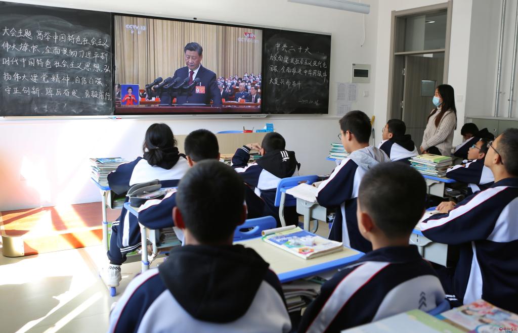 忻州市第一中學(xué)的校園處處洋溢著歡快、自豪的氣氛,師生們通過(guò)不同渠道,共同見(jiàn)證著這一歷史時(shí)刻??赐曛辈ズ?,教師劉津帆意猶未盡。她說(shuō):“前不久,我們剛剛迎來(lái)建校120周年華誕,如今,又喜迎黨的二十大勝利召開(kāi),心中的歡欣鼓舞、自豪之情真是無(wú)以言表。作為一名人民教師,要始終牢記為黨育人、為國(guó)育才的光榮使命,堅(jiān)決執(zhí)行黨中央的教育方針政策,培根鑄魂,啟智潤(rùn)心,培養(yǎng)德智體美勞全面發(fā)展的社會(huì)主義建設(shè)者和接班人。”