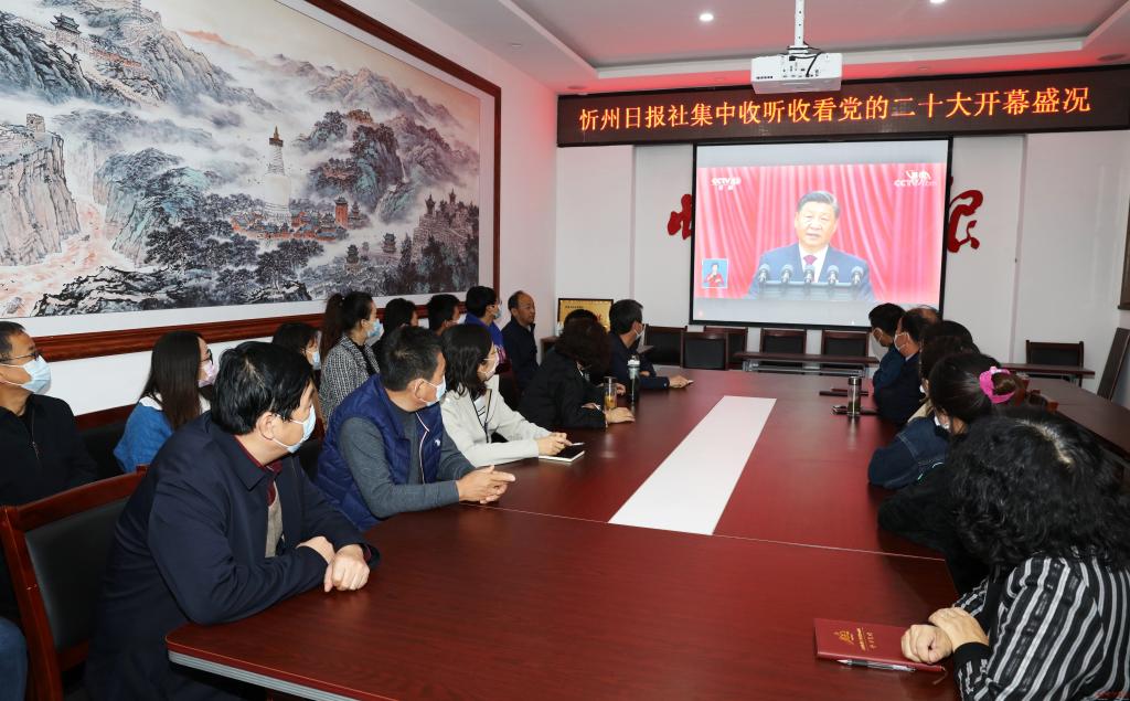 忻州日?qǐng)?bào)社組織采編人員收看。范濤 攝