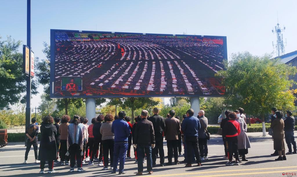 忻州城區(qū)市民在街頭大屏幕收看大會(huì)。楊貴明 攝