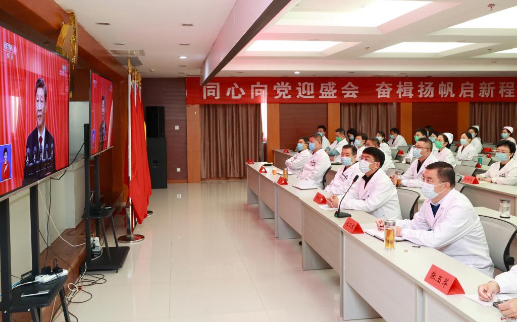 市人民醫(yī)院組織醫(yī)護(hù)人員收看。張存良 攝
