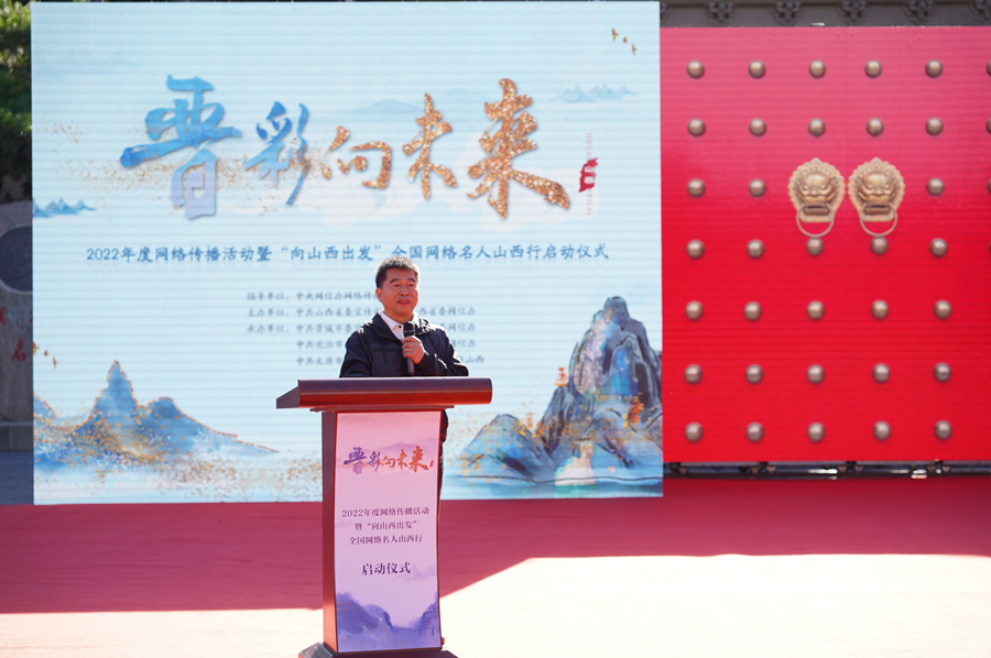 圖為“晉彩向未來”2022年度網(wǎng)絡(luò)傳播活動暨“向山西出發(fā)”全國網(wǎng)絡(luò)名人山西行活動啟動儀式現(xiàn)場。宋岳庭、江建橋攝