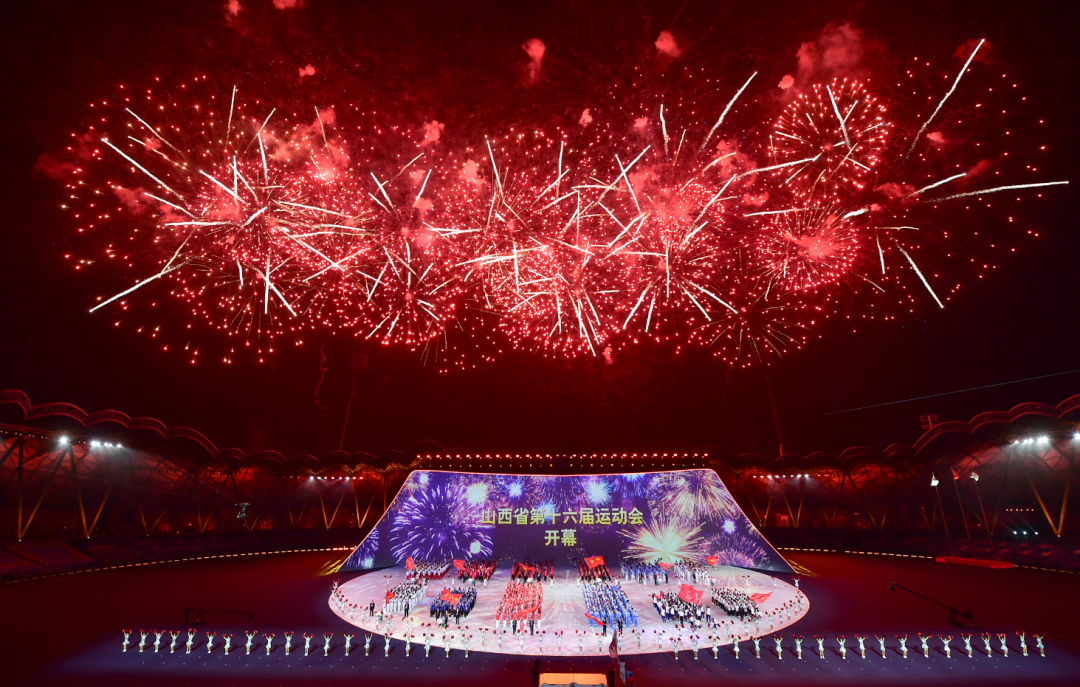 富有地域特色的暖場表演過后,在一萬多名現(xiàn)場觀眾聲震云霄的倒計(jì)時(shí)中,開幕儀式正式開始。國旗和會(huì)旗入場儀式后,各代表隊(duì)運(yùn)動(dòng)員、教練員在引導(dǎo)員和執(zhí)旗手的引導(dǎo)下,闊步入場。大同和朔州作為東道主,壓軸亮相,得到了觀眾的熱烈歡呼。之后,升國旗儀式和升會(huì)旗儀式莊嚴(yán)進(jìn)行,山西省第十六屆運(yùn)動(dòng)會(huì)宣布開幕。