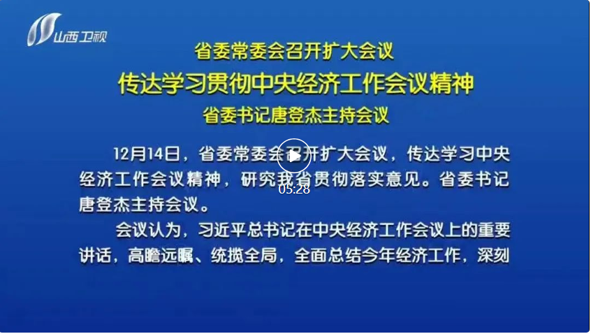 山西日報(bào)報(bào)道 12月14日,省委常委會(huì)召開擴(kuò)大會(huì)議,傳達(dá)學(xué)習(xí)中央經(jīng)濟(jì)工作會(huì)議精神,研究我省貫徹落實(shí)意見。省委書記唐登杰主持會(huì)議。
