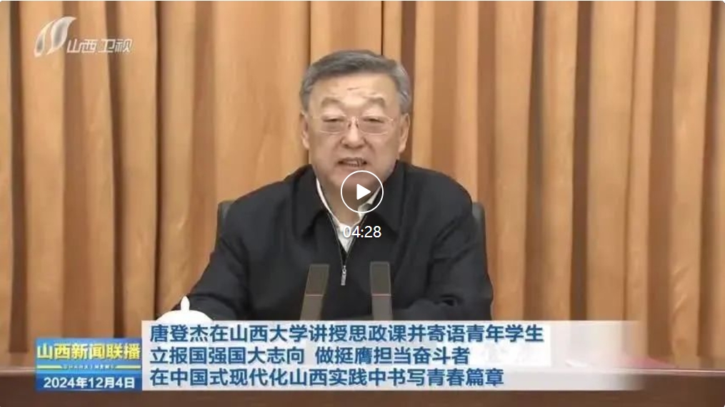 山西日報記者陳俊琦報道 12月3日,省委書記唐登杰來到山西大學(xué)講授思政課,深入學(xué)習(xí)貫徹習(xí)近平新時代中國特色社會主義思想和黨的二十屆三中全會精神,寄語全省廣大青年學(xué)生牢記領(lǐng)袖殷殷囑托,立報國強國大志向、做挺膺擔(dān)當(dāng)奮斗者,在中國式現(xiàn)代化山西實踐中書寫青春篇章。省委常委、秘書長李鳳岐參加。