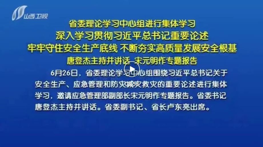 6月26日,省委理論學(xué)習(xí)中心組圍繞習(xí)近平總書記關(guān)于安全生產(chǎn)、應(yīng)急管理和防災(zāi)減災(zāi)救災(zāi)的重要論述進(jìn)行集體學(xué)習(xí),邀請應(yīng)急管理部副部長宋元明作專題報告。省委書記唐登杰主持并講話。省委副書記、省長盧東亮出席。