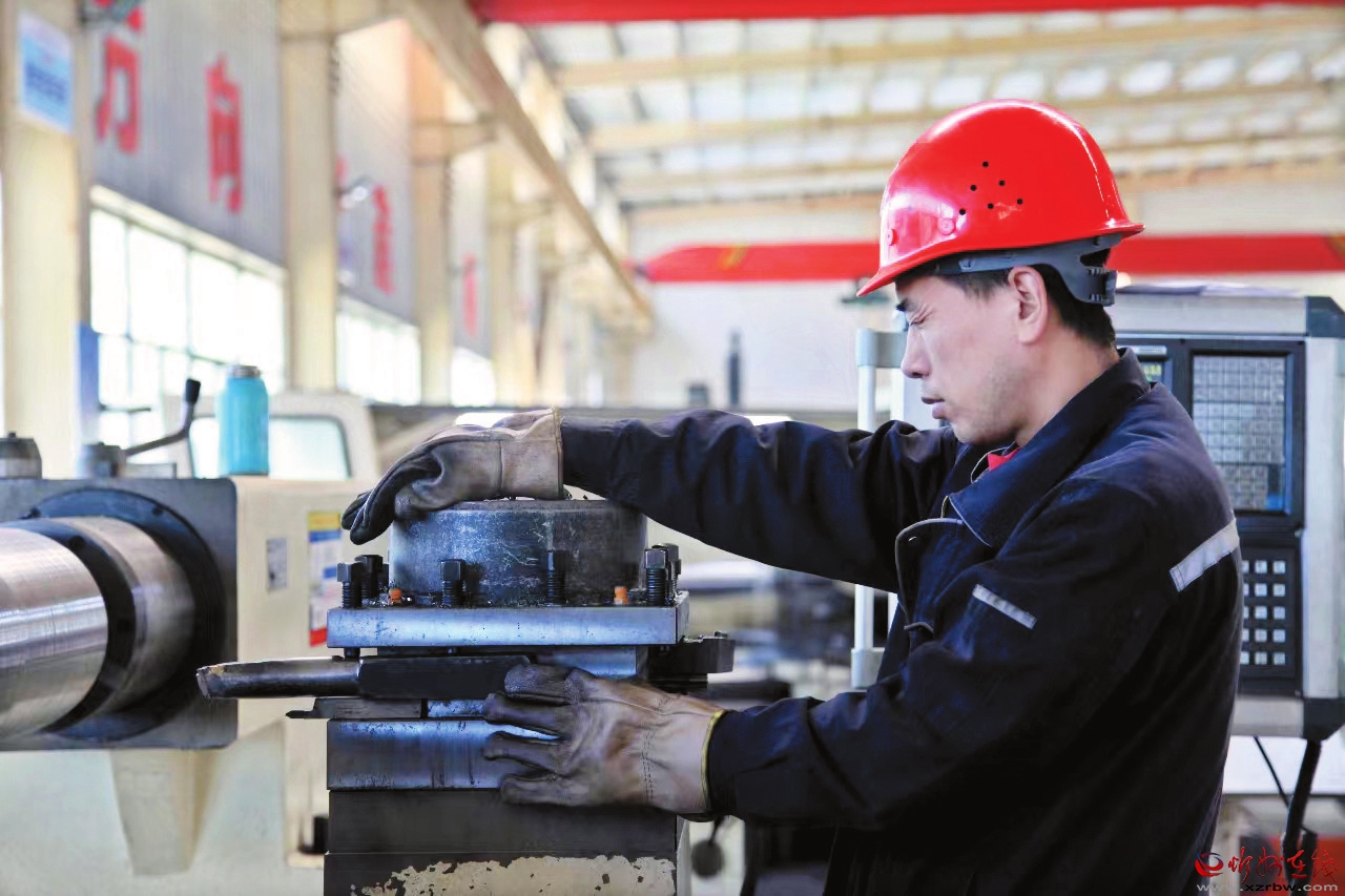 工人操作數(shù)控車床。 記者 申 健攝