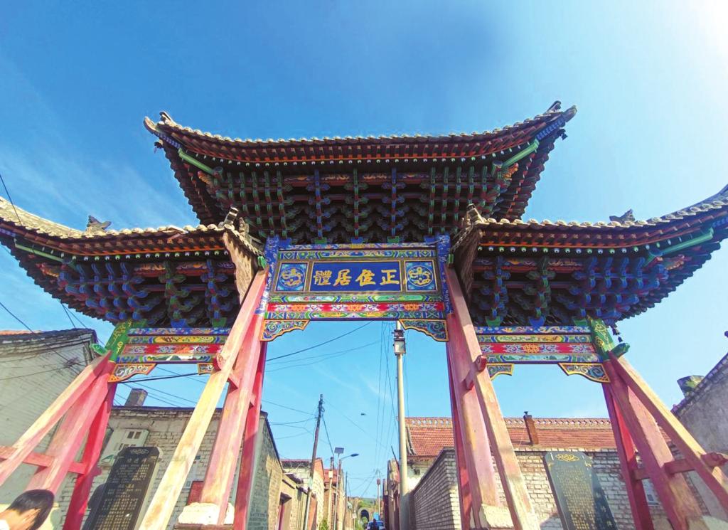 五寨縣三岔木牌坊坐落于三岔堡十字大街的北口,始建于明萬歷九年(1581年)。木牌坊坐北朝南,座基為60厘米高的石砌臺基。牌坊呈三項疊襯“品”字形制,四楹三門,坊高7.25米,通寬11.2米,其中門高3米,寬3.15米,車馬通行;兩邊門略低,高2.65米,寬2米,只呈門樣,不作通行。四楹都用雙木斜卡,并抱有雕獅的石鼓,以鐵條箍制,既固根基,又顯威嚴。欄坊下裝有木刻匾額,正面題“正位居體”,背面題“大觀在上”。頂端起脊彩飛,雙層檐頭,青瓦蓋頂;下檐五步彩飛檐頭拱,結(jié)構(gòu)奇巧,造型美觀,檐頭四角掛有風鈴,微風輕拂,鈴聲悠揚,蔚為壯觀。三岔木牌坊是五寨縣境內(nèi)僅存的一座木結(jié)構(gòu)明代古建筑,具有較高的建筑文化水平和藝術(shù)鑒賞價值。2007年6月6日,忻州市人民政府公布其為市級文物保護單位。