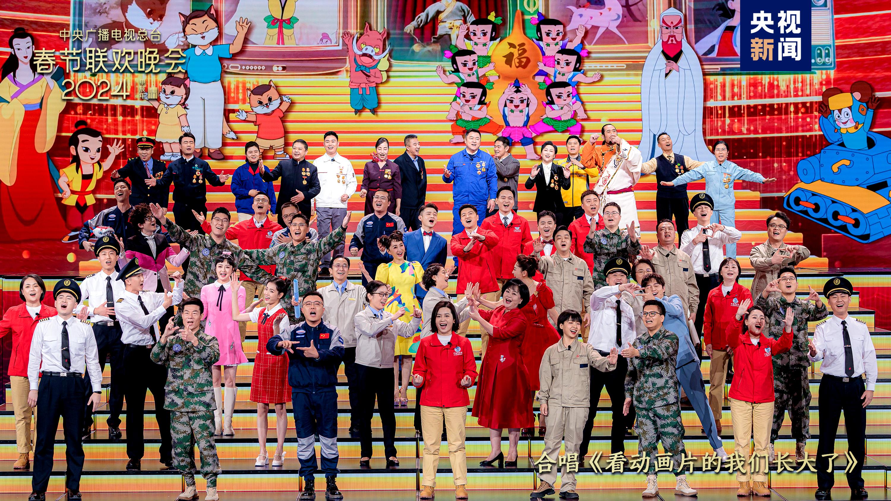踐行“以人民為中心”的創(chuàng)作導(dǎo)向,今年總臺春晚邀請在各行業(yè)發(fā)光發(fā)熱、可愛可親的平凡人亮相舞臺、入座觀眾席。真摯動人的百姓故事,奮斗進(jìn)取的精神血脈,盡展神州大地的蓬勃生機(jī)。開場短片《我們的春晚》以電影化拍攝手法,記錄勇敢追夢的百姓群像;全國五一勞動獎?wù)芦@得者,神舟十七號航天員乘組以及飛行員、教師、科研人員、設(shè)計師等50余位行業(yè)代表一同合唱《看動畫片的我們長大了》,在熟悉的童年旋律中串起成長的閃光軌跡。大國工匠、勞模代表等在遼寧沈陽分會場唱響“咱們都回家鄉(xiāng),鉚足干勁兒闖一闖”,自信的笑容照亮人們對新一年的向往。