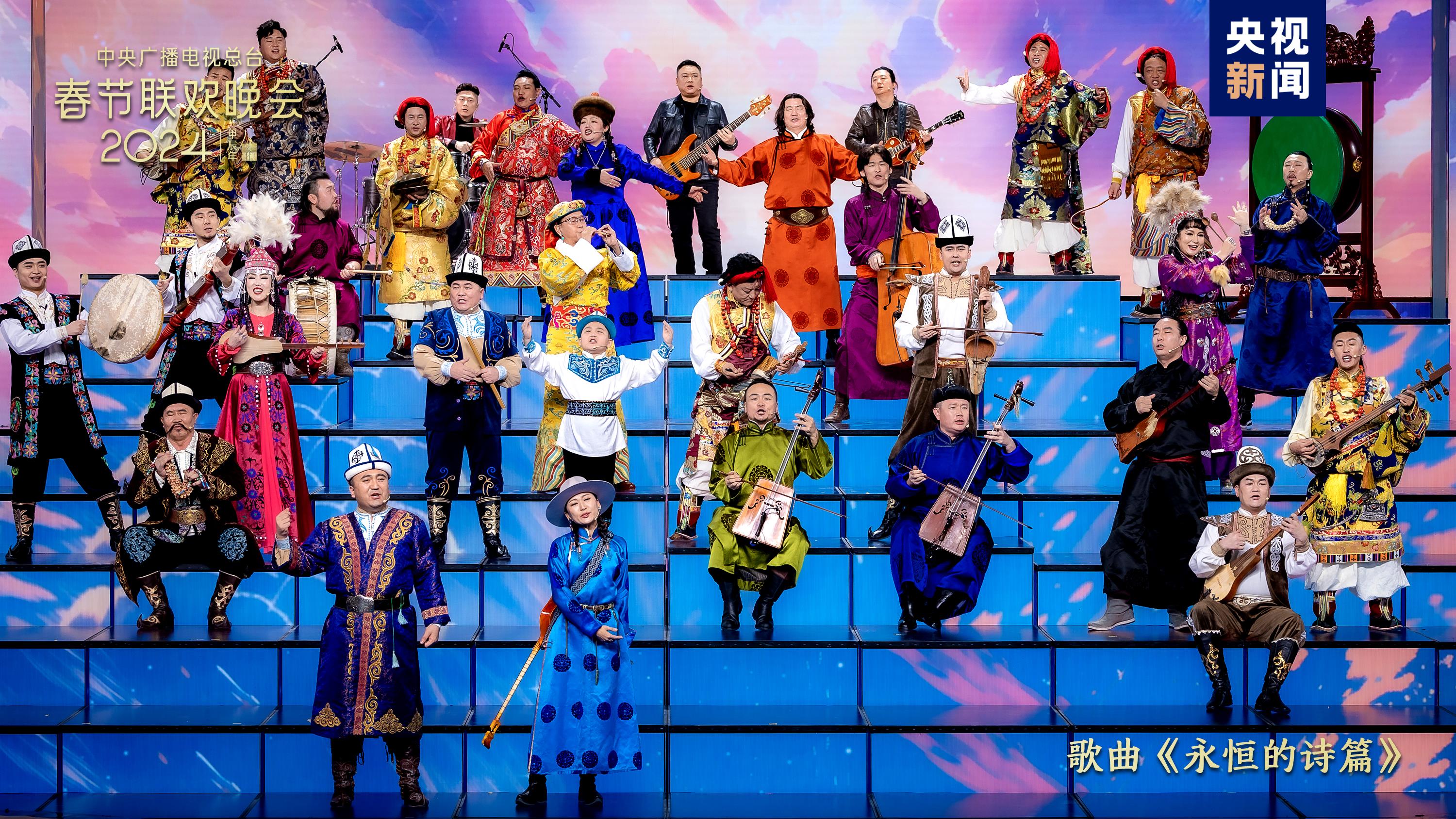 同根同源、同心同愿。歌曲《禮序》中,古巨基、蘇有朋、宋佳、麥嘉欣與來自海峽兩岸暨香港、澳門的小朋友們通過“禮”這一中華民族共通的文化符號,唱出攜手同心、共赴團(tuán)圓的美好期許?!队篮愕脑娖穫鞒聽柨俗巫濉⒚晒抛?、藏族的民族史詩,蒼勁有力,響徹廣袤大地,書寫遼闊土地上的生生不息。