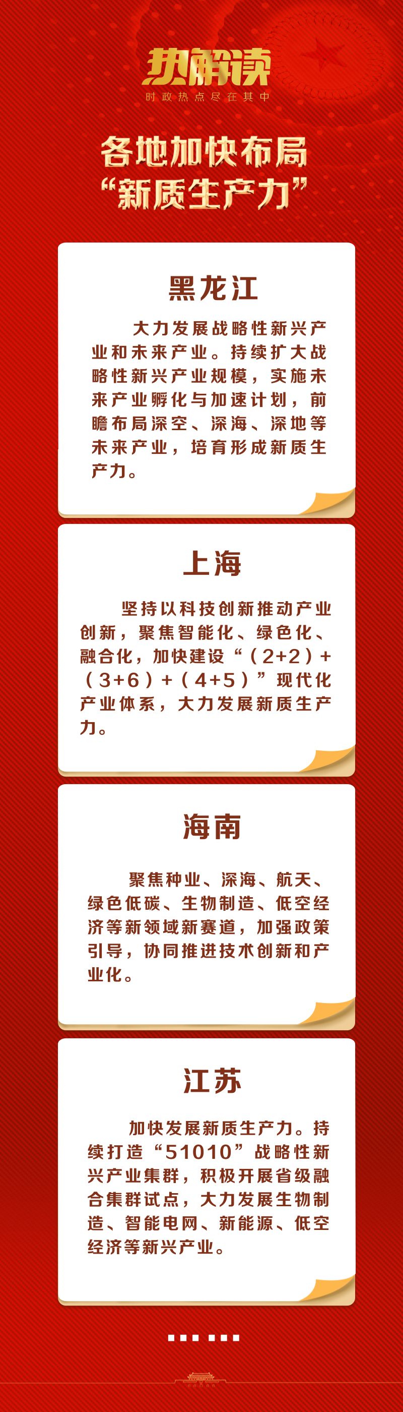 加快發(fā)展新質(zhì)生產(chǎn)力已成為2024年推進(jìn)經(jīng)濟(jì)社會高質(zhì)量發(fā)展的主旋律。各地?fù)屪C(jī)遇,紛紛布局。在各省區(qū)市2024年政府工作報告中,多地將加快培育新質(zhì)生產(chǎn)力列為重點(diǎn)工作任務(wù)。
