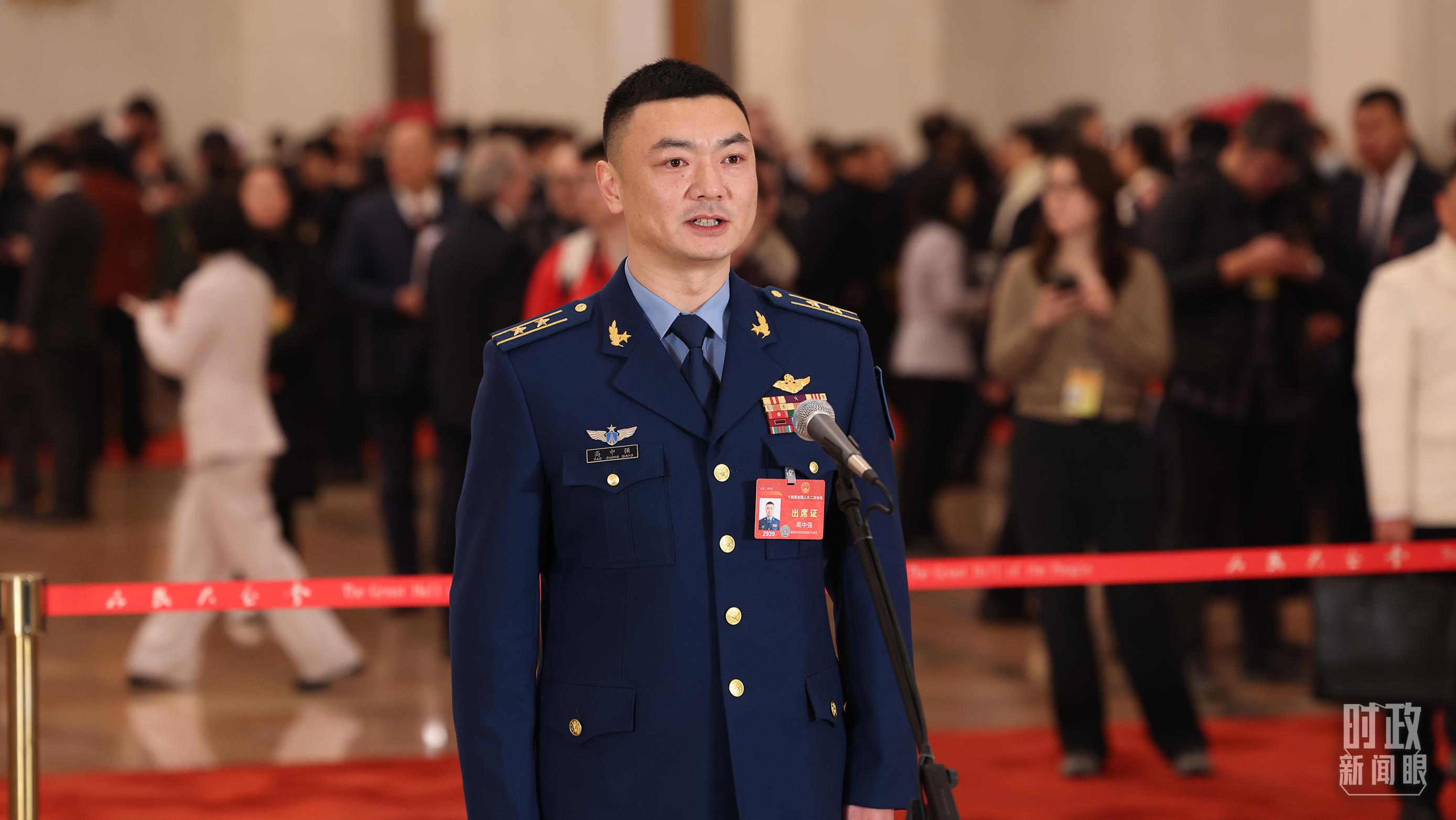 △2024年3月5日,十四屆全國人大二次會議首場“代表通道”集中采訪活動中,全國人大代表、空軍航空兵某旅副參謀長高中強(qiáng)正在答記者問。(圖/視覺中國)