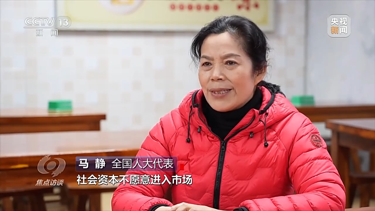 全國(guó)人大代表 馬靜:由于利潤(rùn)等原因,社會(huì)資本不愿意進(jìn)入市場(chǎng),我也希望政府通過(guò)減免房租、政策上的幫扶等降低成本,引導(dǎo)社會(huì)資本參與社區(qū)老年食堂,讓更多的老年人在家門口吃上可口的飯菜。