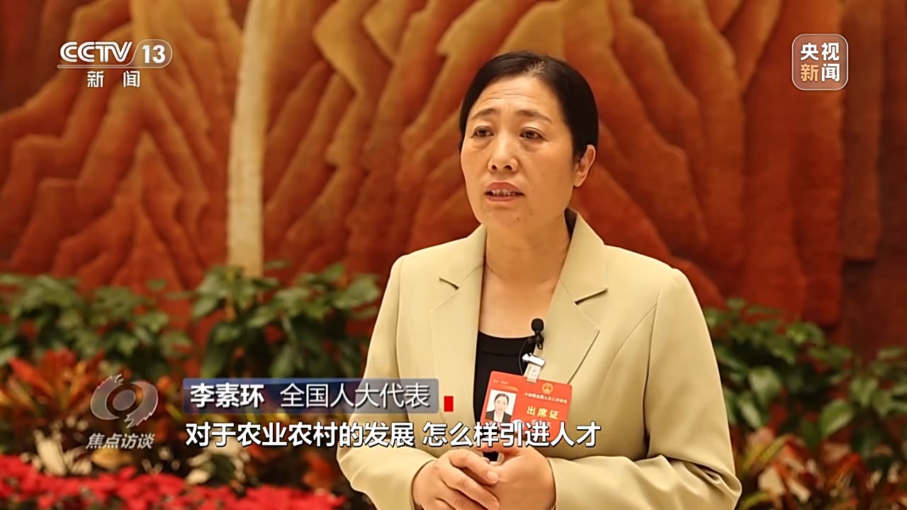 全國(guó)人大代表 李素環(huán):總書記非常關(guān)注農(nóng)村農(nóng)業(yè)的發(fā)展,對(duì)于農(nóng)業(yè)農(nóng)村的發(fā)展,怎么樣引進(jìn)人才作出很多部署。人才引進(jìn)機(jī)制不斷完善,會(huì)有一大批人才到農(nóng)村里去,愛(ài)上農(nóng)村,我相信到那時(shí)候我們農(nóng)村會(huì)是一幅很美麗的畫卷。