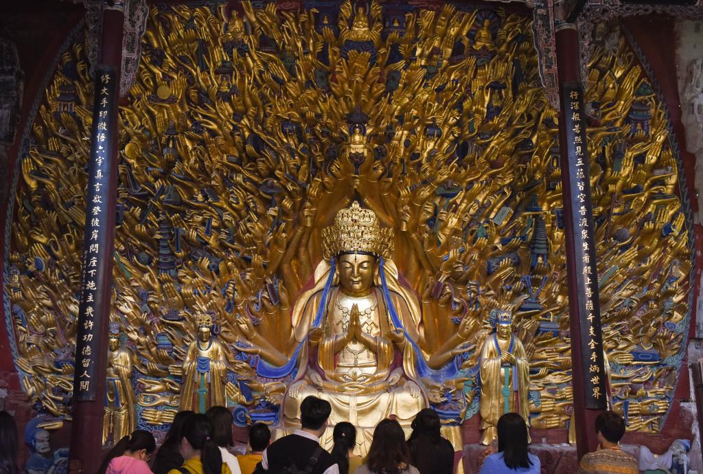 1952年,大足石刻文物保護(hù)機(jī)構(gòu)成立,開始系統(tǒng)科學(xué)保護(hù)大足石刻。當(dāng)年,北山石刻保護(hù)長(zhǎng)廊啟動(dòng)建設(shè),北山石刻上方加蓋了擋雨的頂棚;1961年,北山、寶頂山摩崖造像成為第一批全國(guó)重點(diǎn)文物保護(hù)單位;1999年,大足石刻被列入《世界遺產(chǎn)名錄》;2015年,全國(guó)石質(zhì)文物保護(hù)一號(hào)工程——大足石刻千手觀音造像搶救性保護(hù)工程竣工;2019年,《大足石刻全集》出版,填補(bǔ)了國(guó)內(nèi)石窟寺編寫出版大型考古報(bào)告的空白……