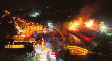 夜幕降臨,火花四濺,光影交錯(cuò),在裸眼3D技術(shù)打造的場(chǎng)景藝術(shù)下,一場(chǎng)《如愿大陽(yáng)》實(shí)景戲劇悄然登場(chǎng),婉轉(zhuǎn)的音樂(lè)和動(dòng)人的故事仿若解讀著千年大陽(yáng)鐵文化,讓游人懷揣著對(duì)歷史文化的探尋,沉浸式走進(jìn)這千年古鎮(zhèn),一睹往日恢宏……