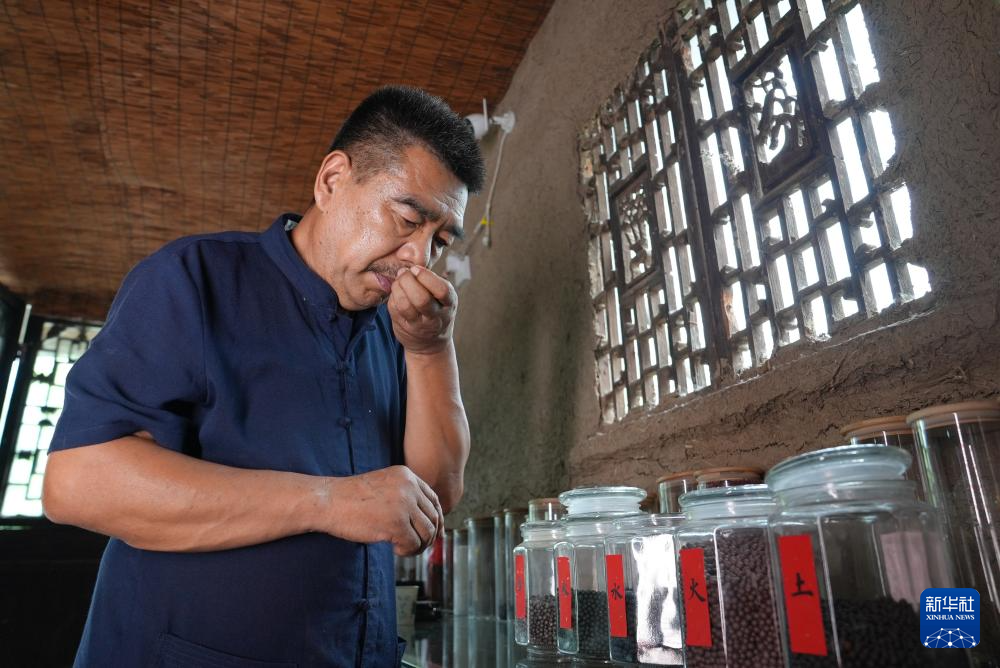 張書芳在查看已經(jīng)制作完成的香珠品質(zhì)及保存情況(7月9日攝)。(新華社發(fā) 蘇筱雅 攝)