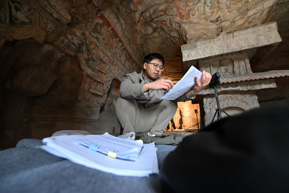 4月16日,在云岡石窟,工作人員在進(jìn)行考古調(diào)查。一支“文物醫(yī)生”團(tuán)隊(duì)